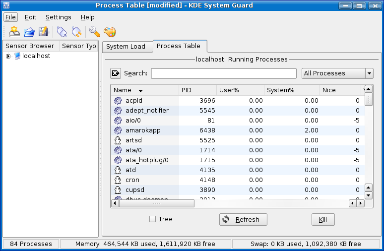 KDE System Guard 1.2.0 in Kubuntu 6.06 (KDE 3.5.2) backup