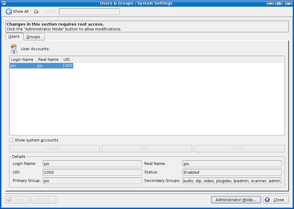 System Settings » Users & Groups in Kubuntu 6.06 (KDE 3.5.2) disk manager