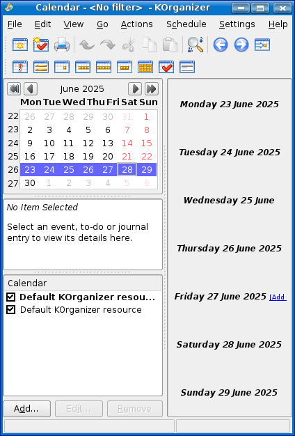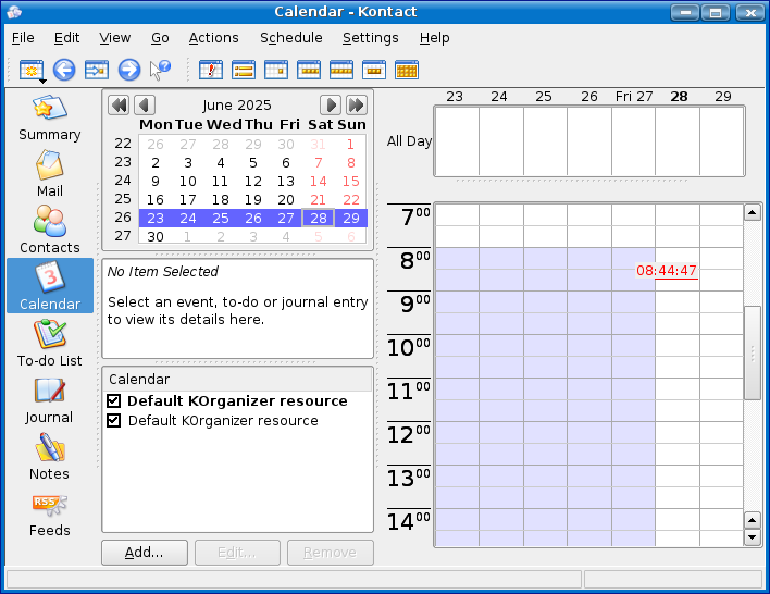 KOrganizer 3.5 in Kubuntu 6.06 (KDE 3.5.2) clock