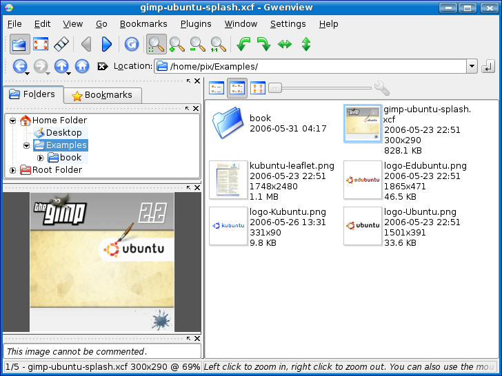 Gwenview 1.3.1 in Kubuntu 6.06 (KDE 3.5.2) notes