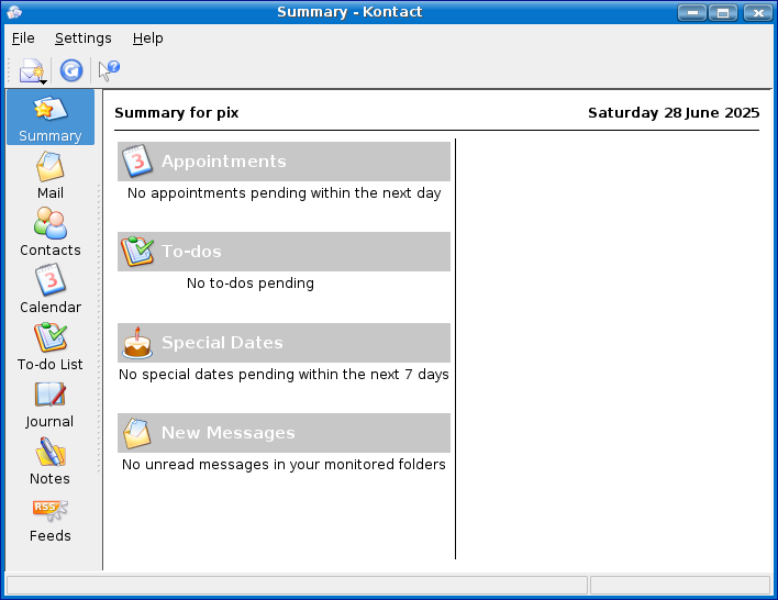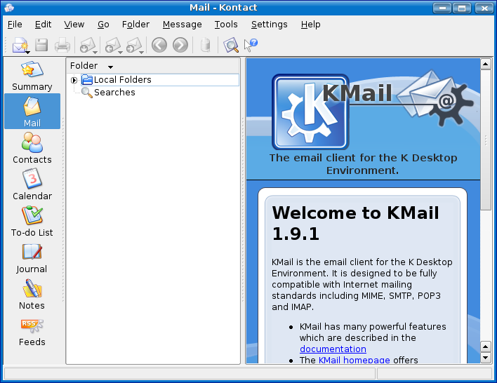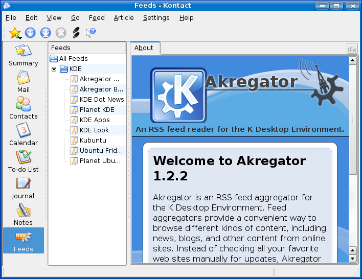 Kontact 1.2 (Kontact Summary 1.1, KMail 1.9.1, KAddressBook 3.5, KOrganizer 3.5, Notes Management 0.5, and Akregator 1.2.2) in Kubuntu 6.06 (KDE 3.5.2) terminal