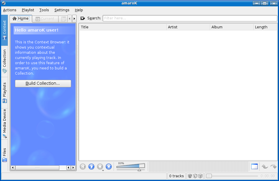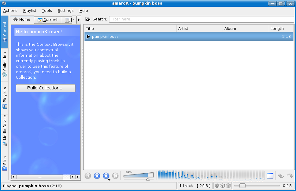 amaroK 1.3.9 in Kubuntu 6.06 (KDE 3.5.2) on-screen keyboard
