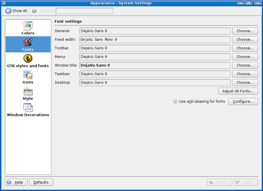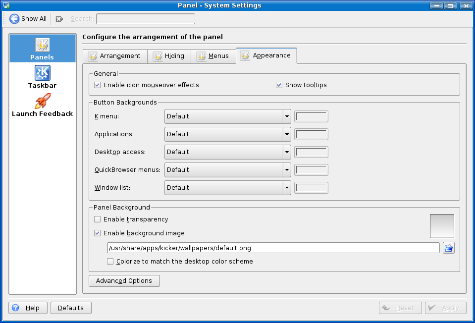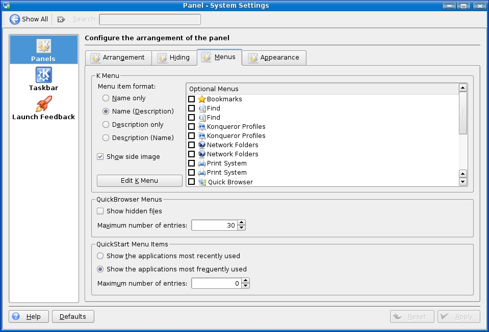 System Settings » Panels in Kubuntu 6.06 (KDE 3.5.2) fonts