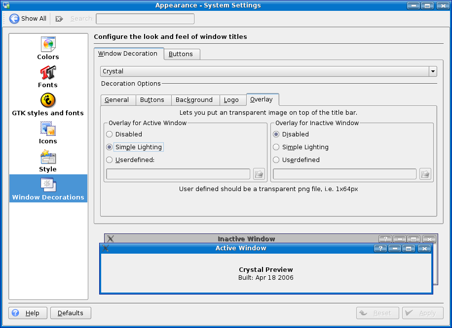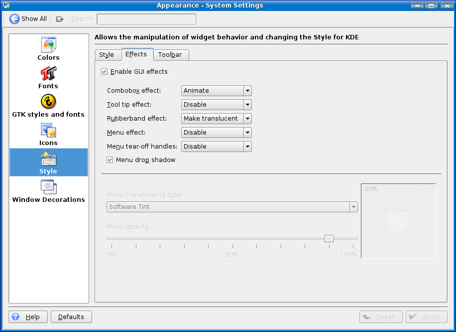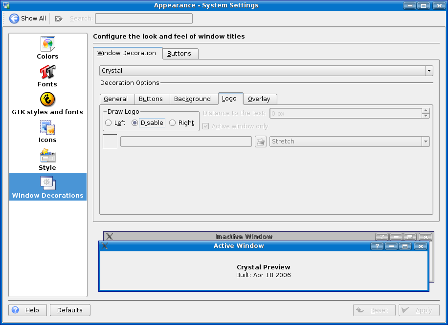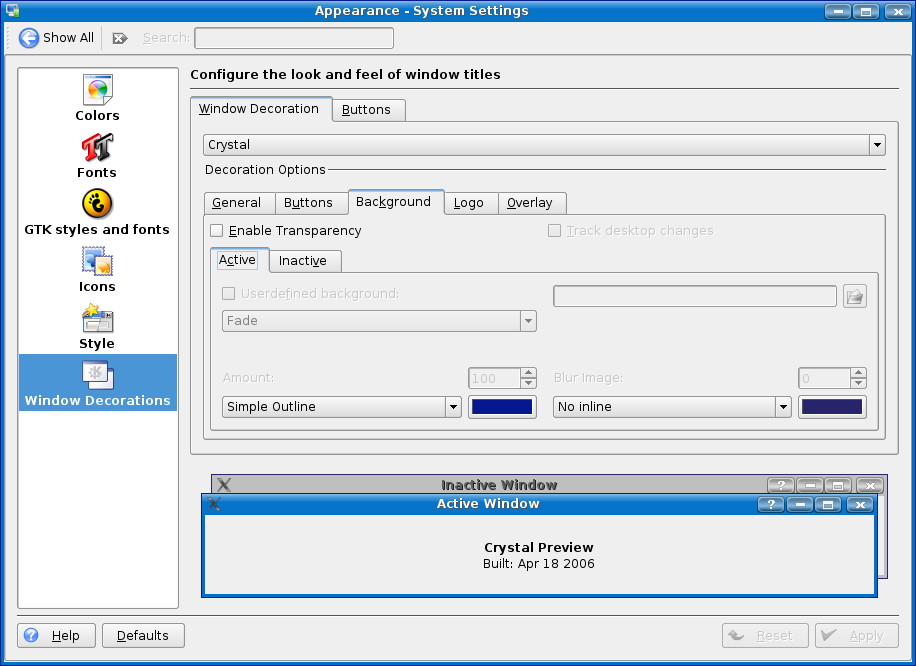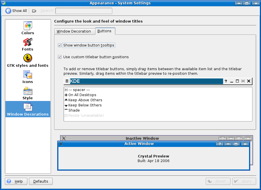 System Settings » Appearance in Kubuntu 6.06 (KDE 3.5.2) desktop