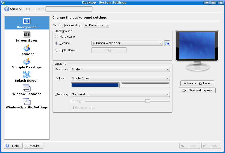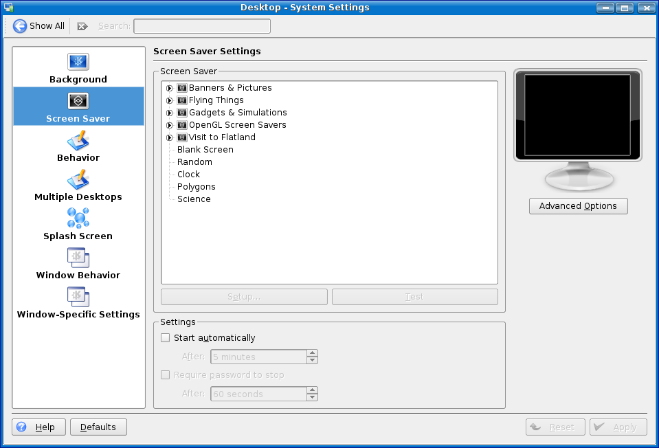 System Settings » Desktop in Kubuntu 6.06 (KDE 3.5.2) screensaver