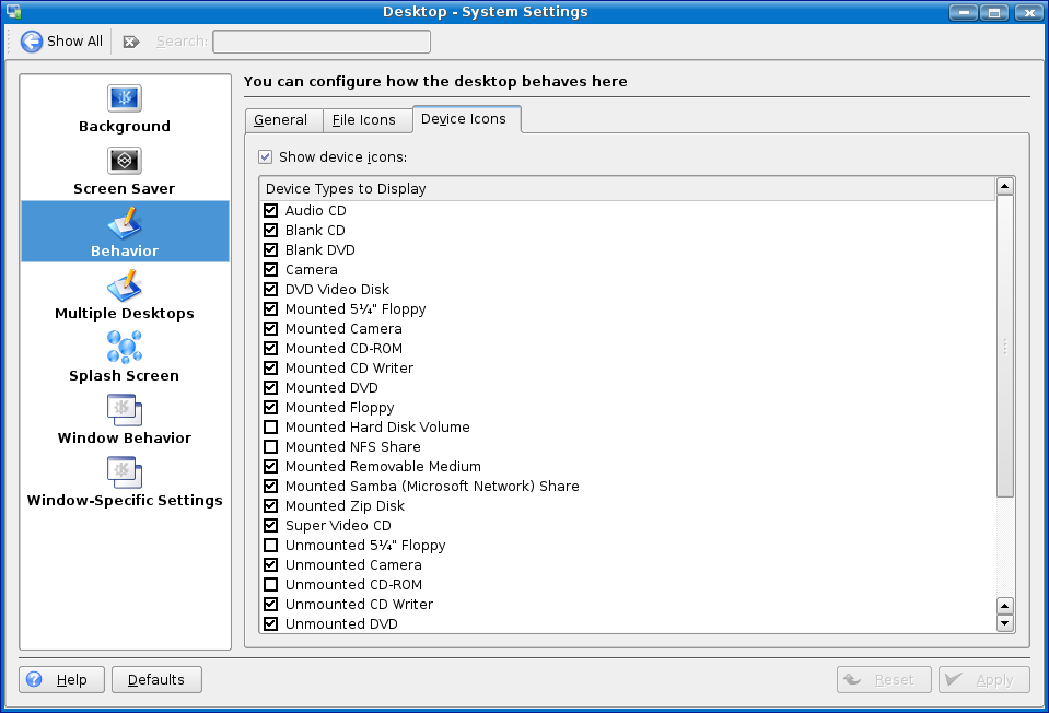 System Settings » System Services in Kubuntu 6.06 (KDE 3.5.2) devices