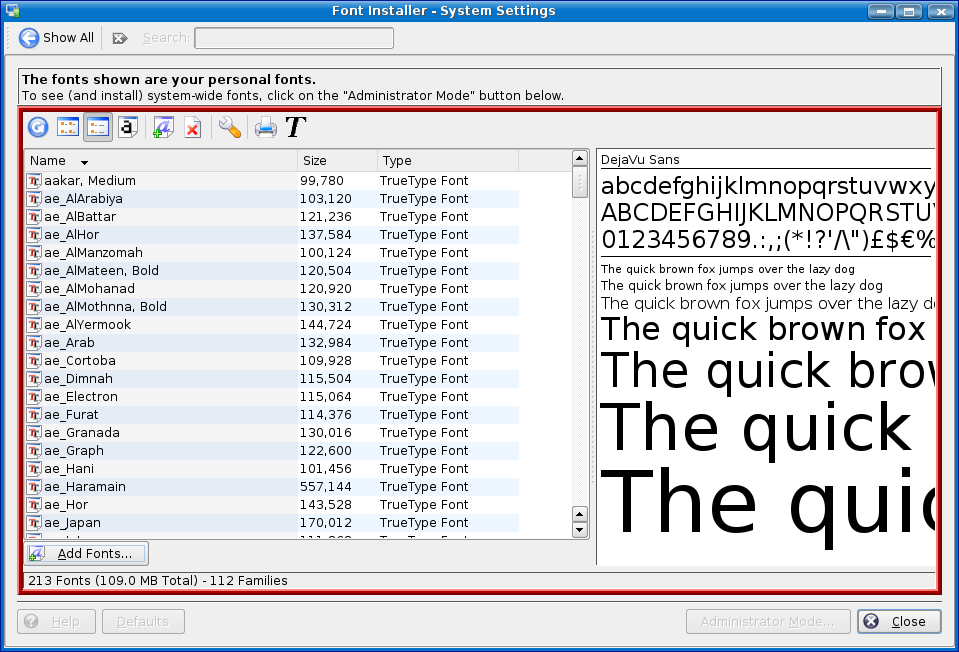 System Settings » Font Installer in Kubuntu 6.06 (KDE 3.5.2) keyboard