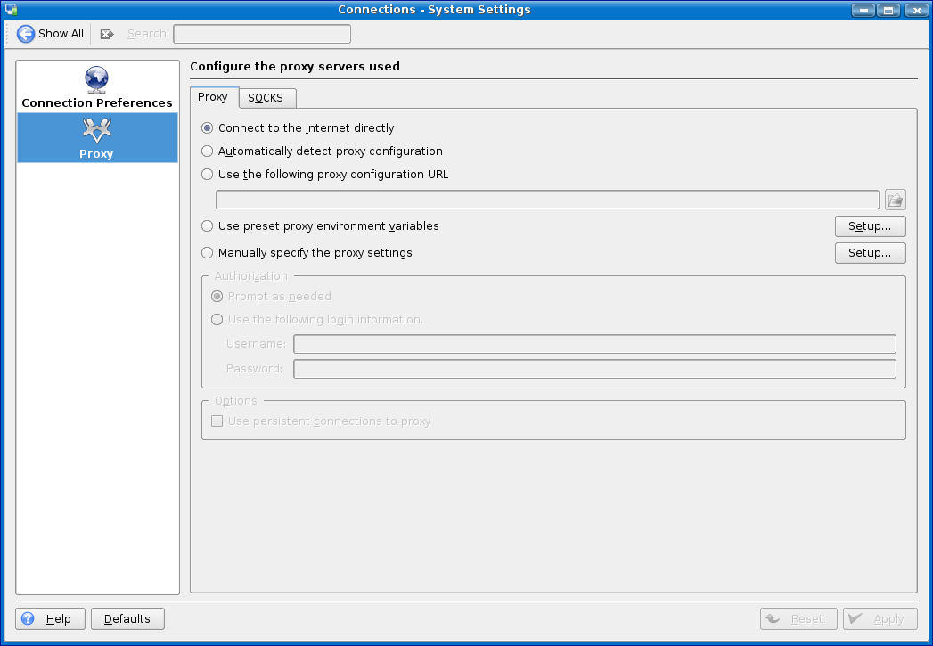 System Settings » Network Settings in Kubuntu 6.06 (KDE 3.5.2) internet