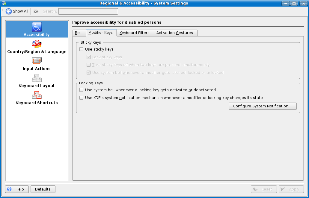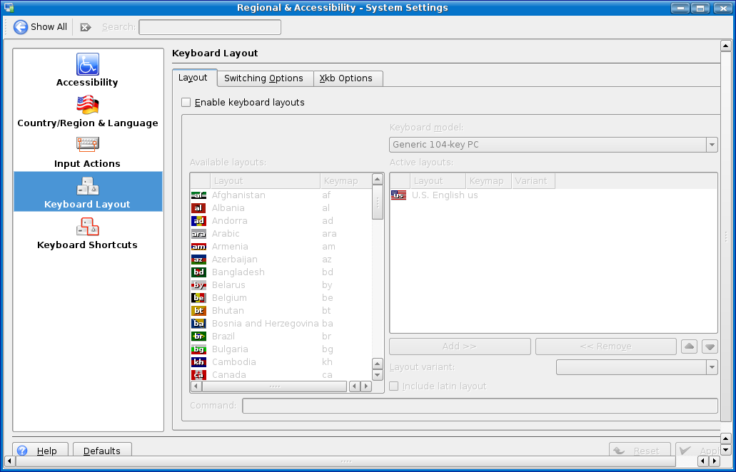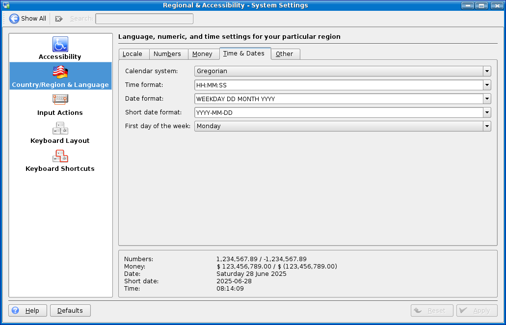 System Settings » Regional & Accessibility in Kubuntu 6.06 (KDE 3.5.2) system