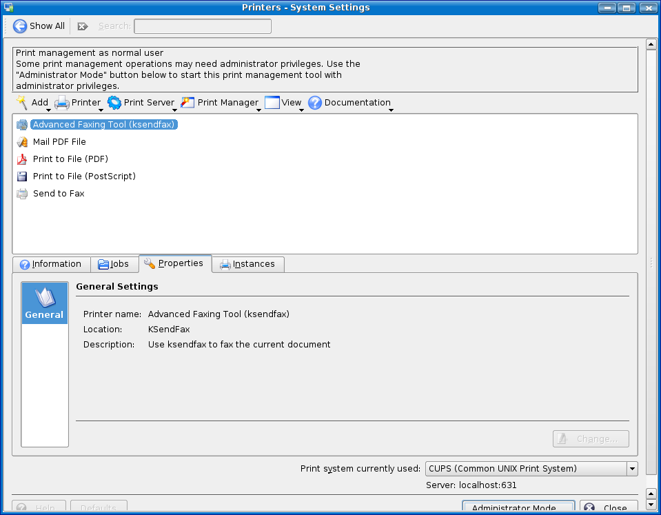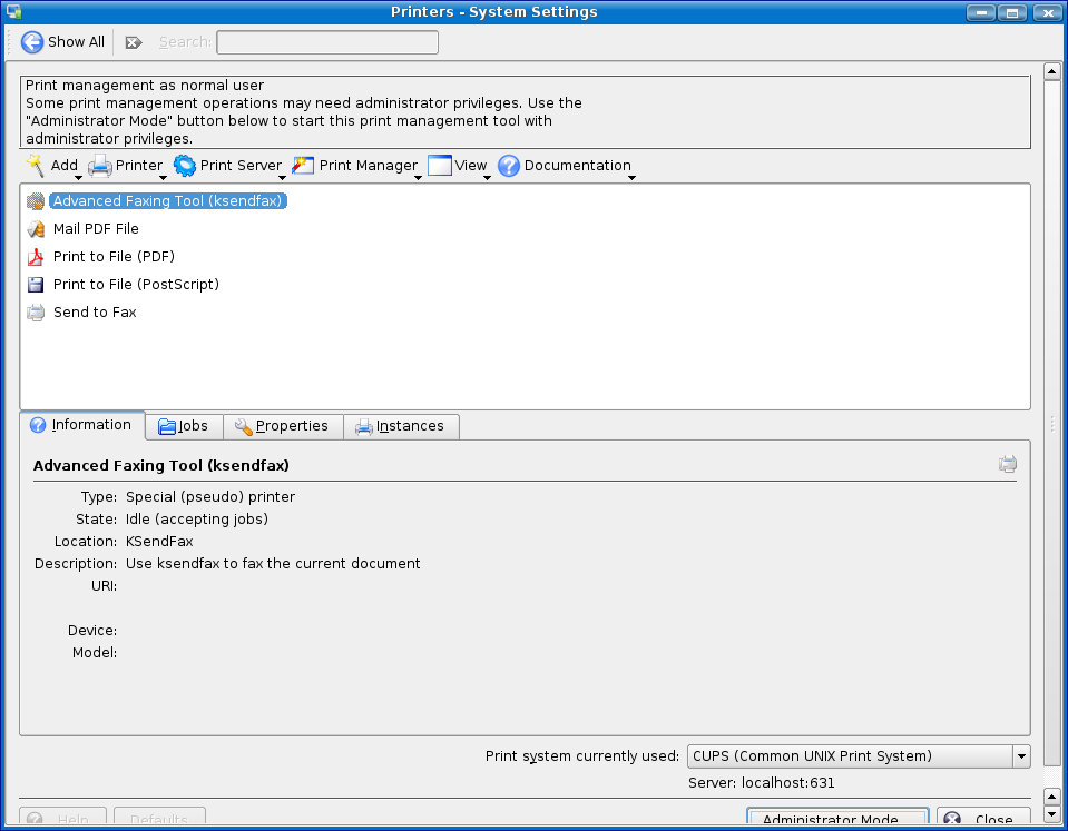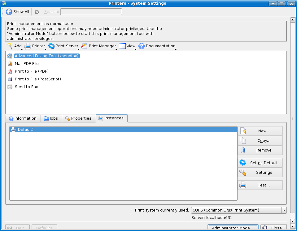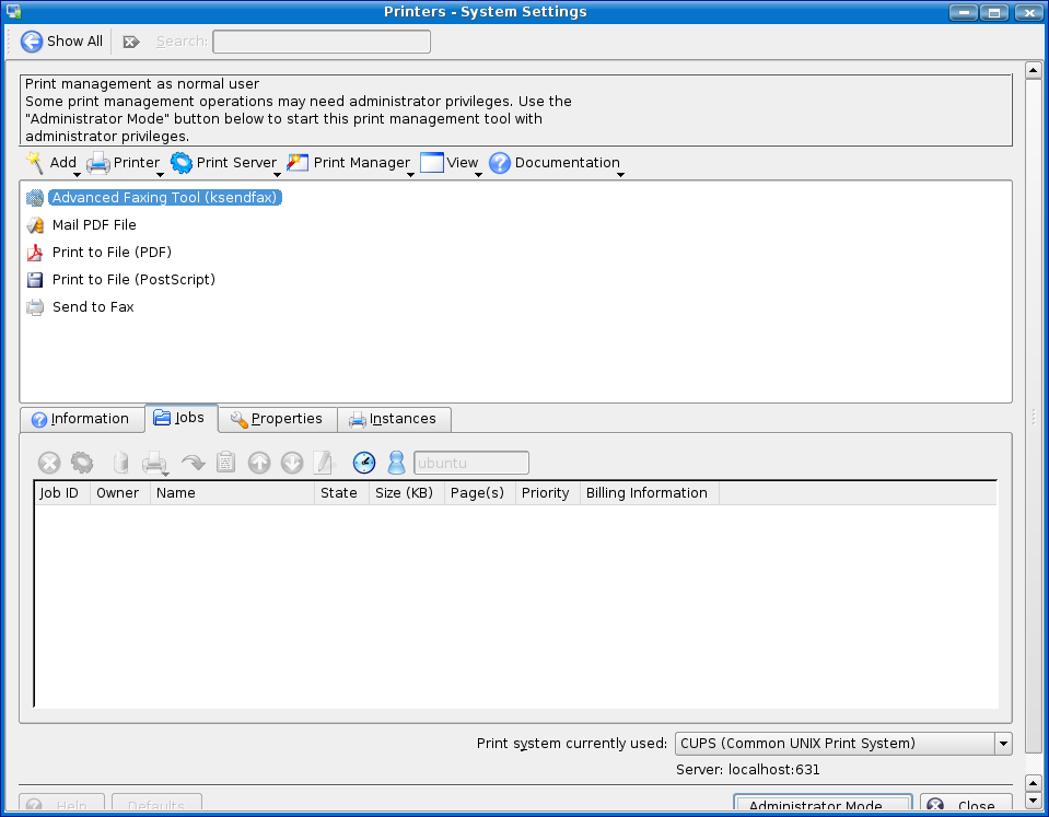 System Settings » Printers in Kubuntu 6.06 (KDE 3.5.2) locale