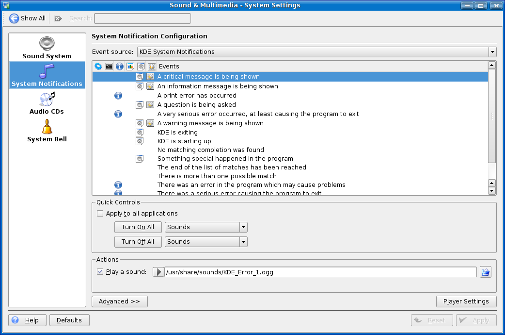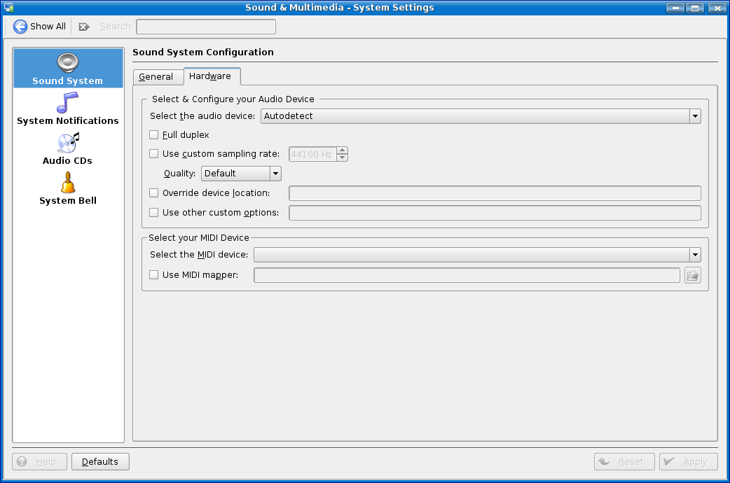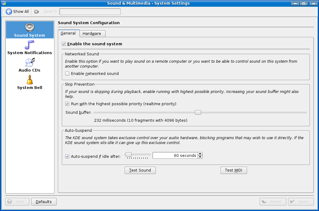 System Settings » Sound & Multimedia in Kubuntu 6.06 (KDE 3.5.2) network
