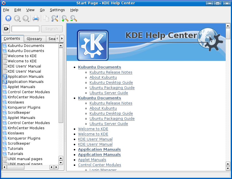 KDE Help Center 3.5.2 in Kubuntu 6.06 (KDE 3.5.2) app manager