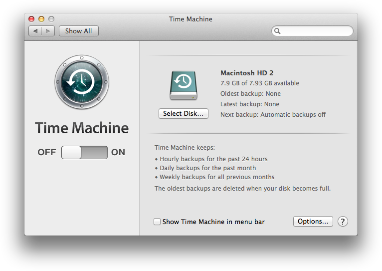 System Preferences » Time Machine in Mac OS X 10.9 Mavericks