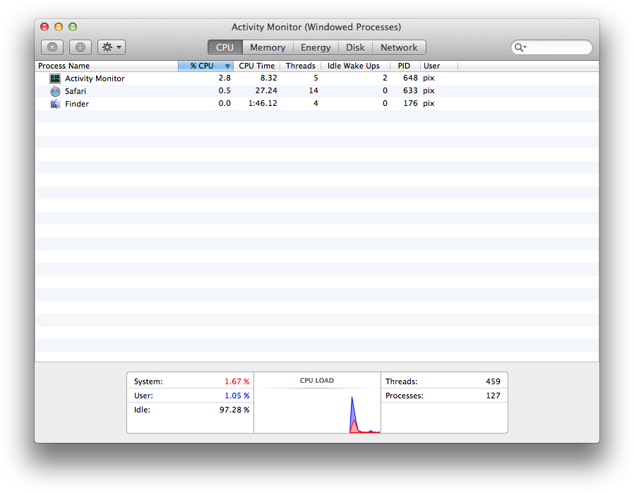 Activity Monitor in Mac OS X 10.9 Mavericks backup