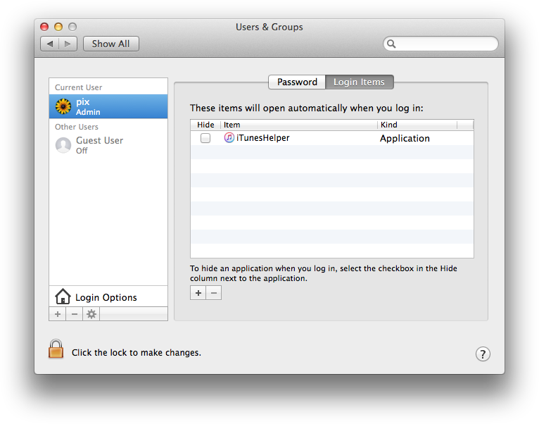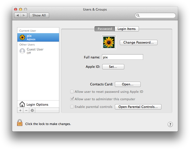 System Preferences » Users & Groups in Mac OS X 10.9 Mavericks disk manager