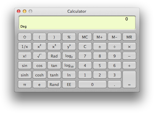 Calculator 10.8 in Mac OS X 10.9 Mavericks calendar