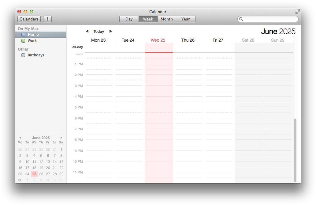 Calendar 7.0 in Mac OS X 10.9 Mavericks clock