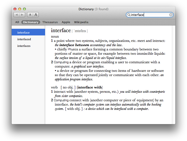 Contacts 8.0 in Mac OS X 10.9 Mavericks dictionary