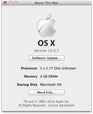 About This Mac in Mac OS X 10.9 Mavericks about app