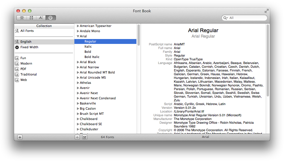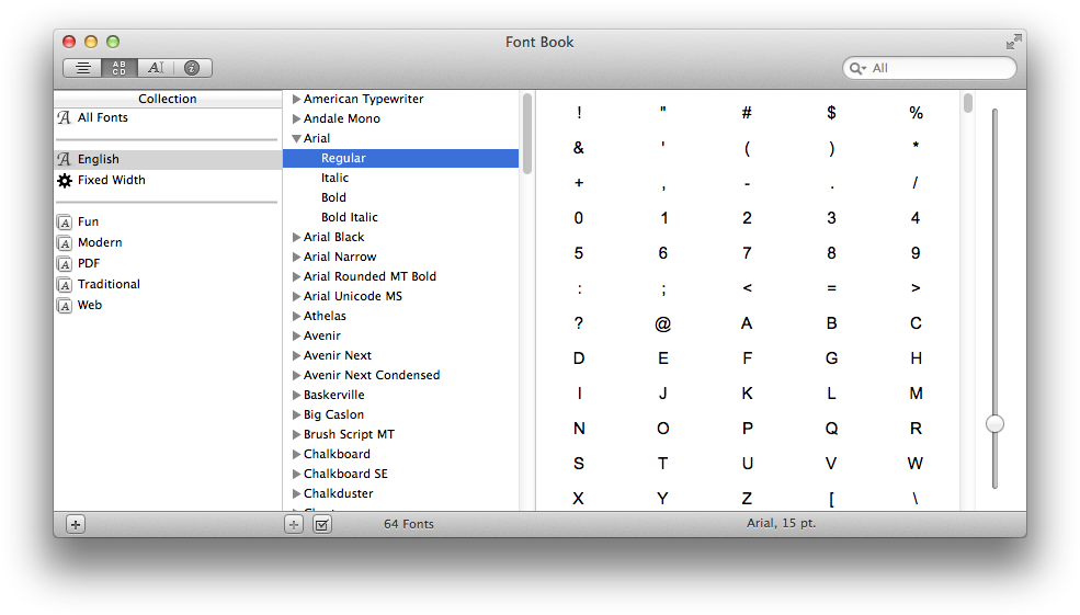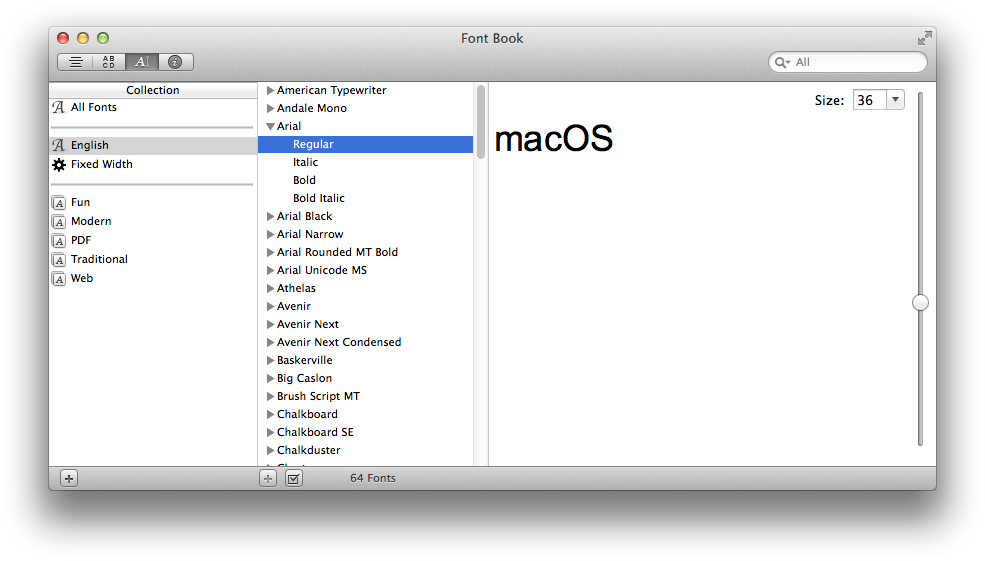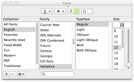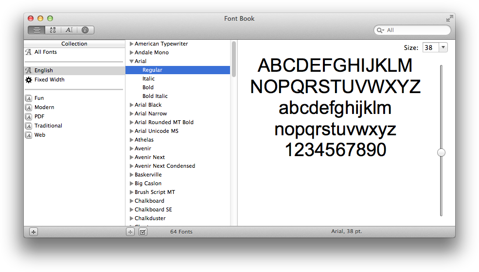 Font Book in Mac OS X 10.9 Mavericks keyboard