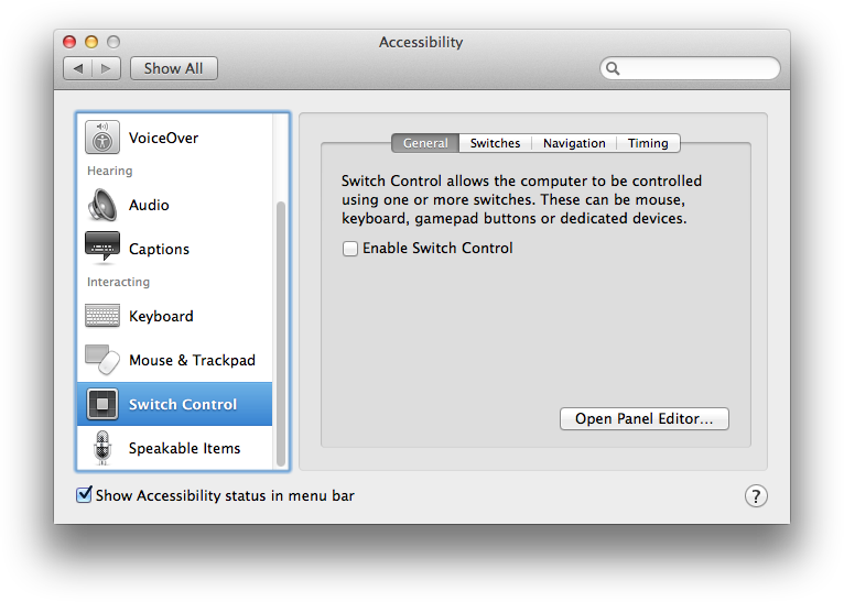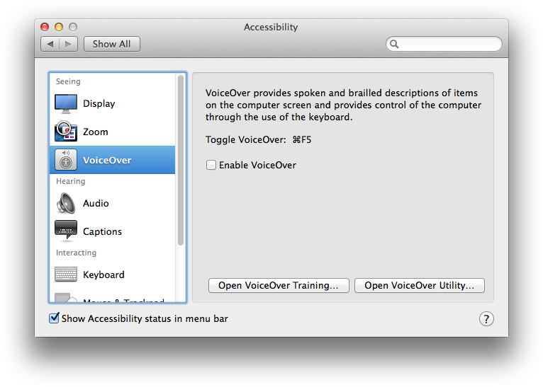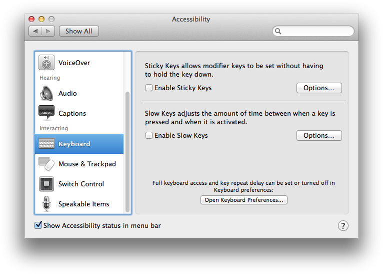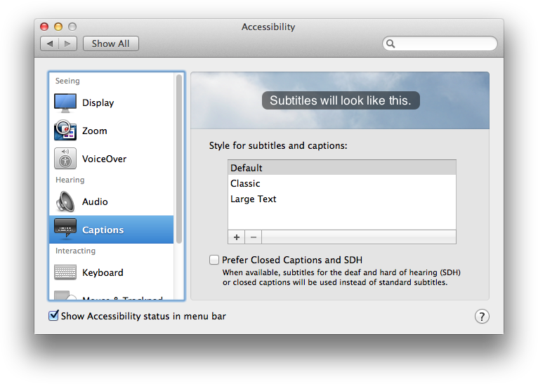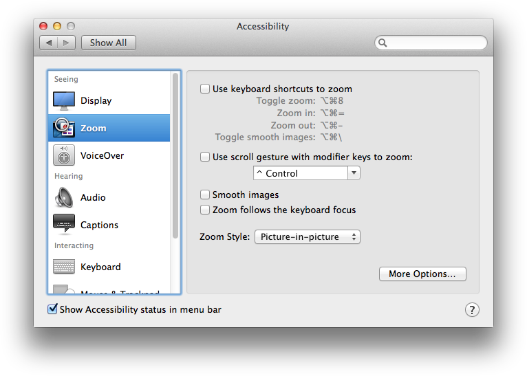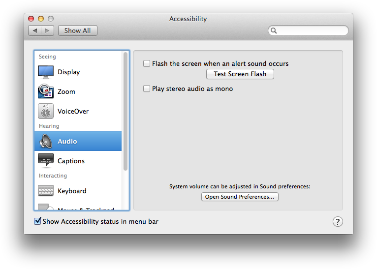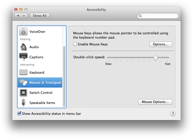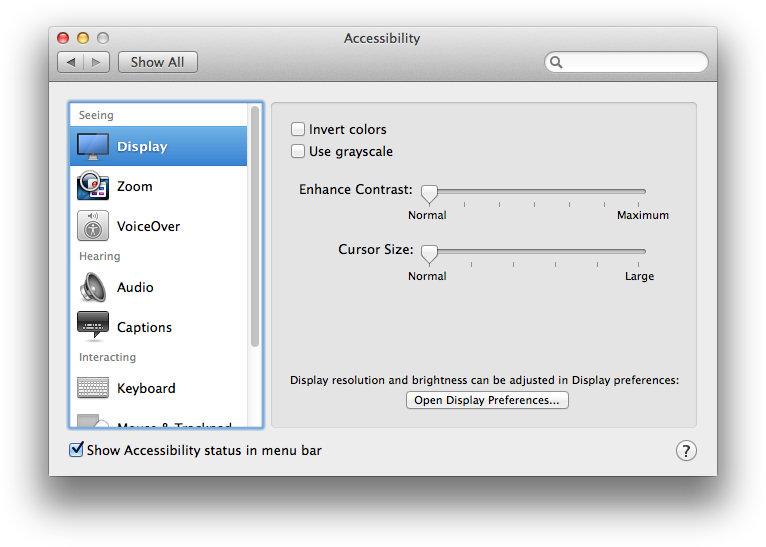 System Preferences » Accessibility in Mac OS X 10.9 Mavericks updates