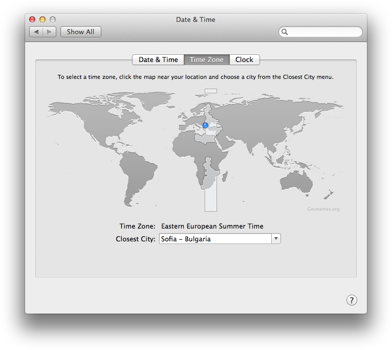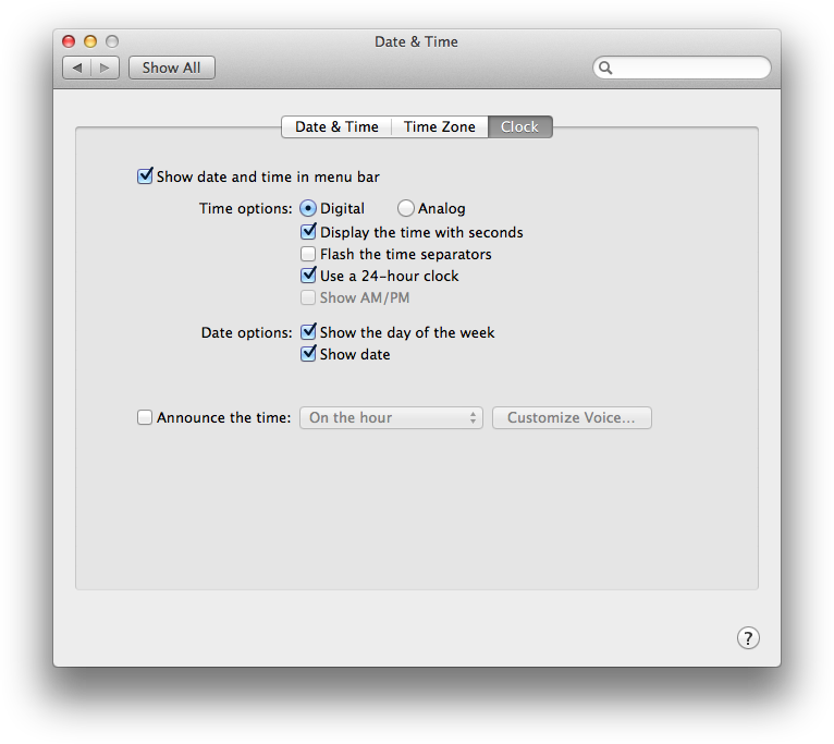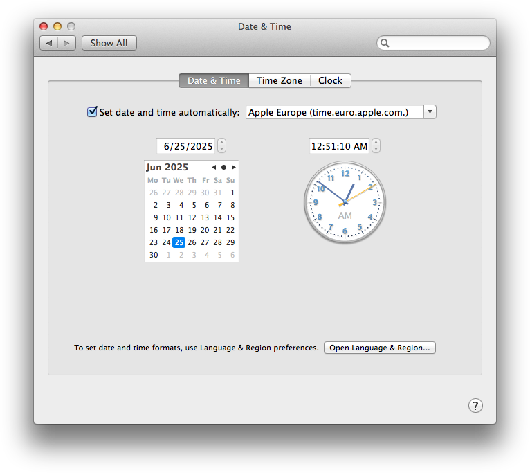 System Preferences » Date & Time in Mac OS X 10.9 Mavericks display