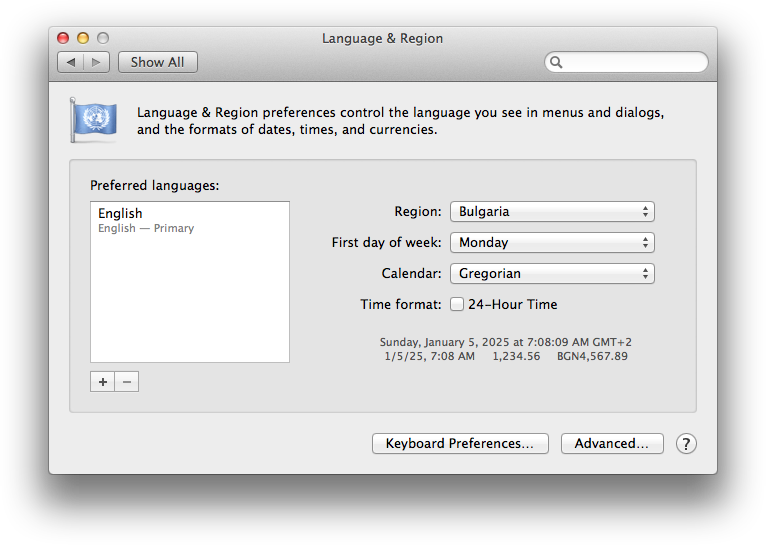 System Preferences » Language & Region in Mac OS X 10.9 Mavericks system
