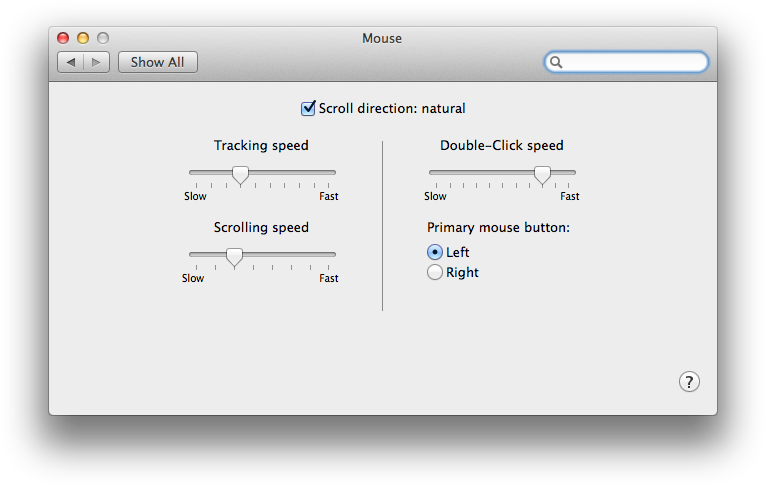 System preferences » Mouse in Mac OS X 10.9 Mavericks cursor