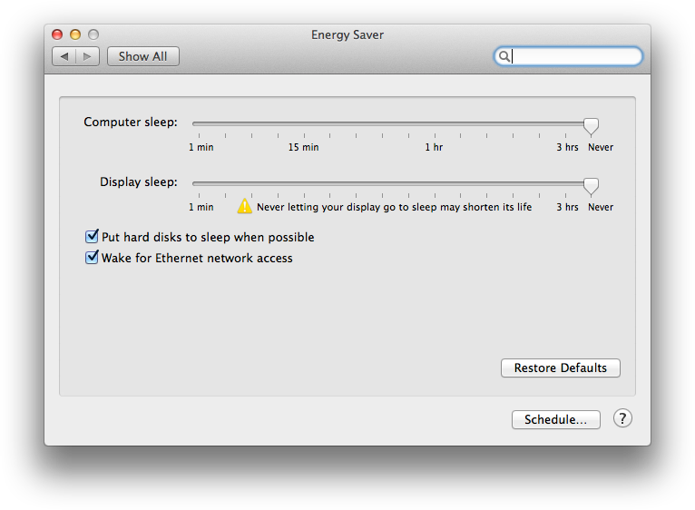 System Preferences » Energy Saver in Mac OS X 10.9 Mavericks