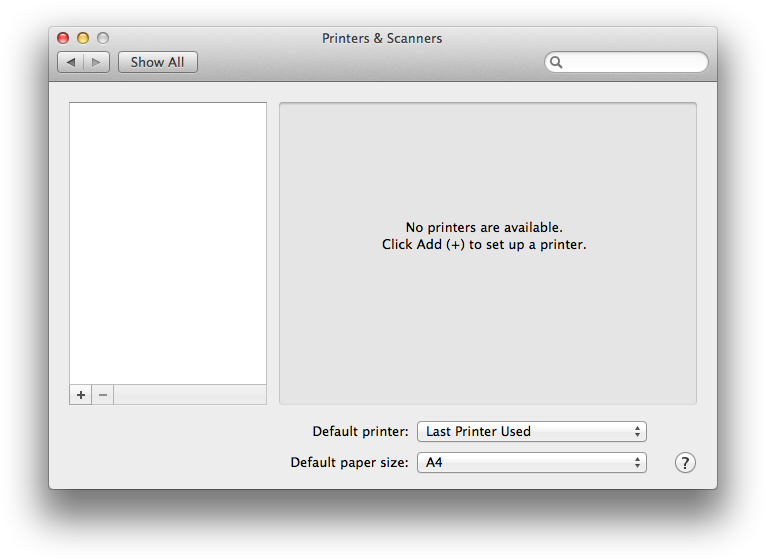 System Preferences » Printers & Scanners in Mac OS X 10.9 Mavericks locale