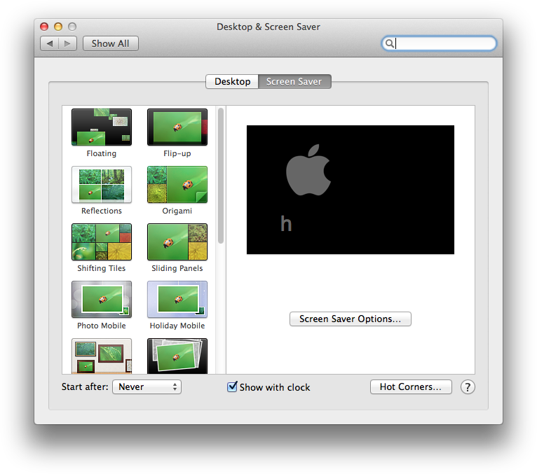 System Preferences » Desktop in Mac OS X 10.9 Mavericks screensaver