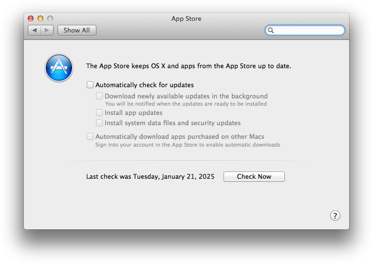System Preferences » App Store in Mac OS X 10.9 Mavericks power
