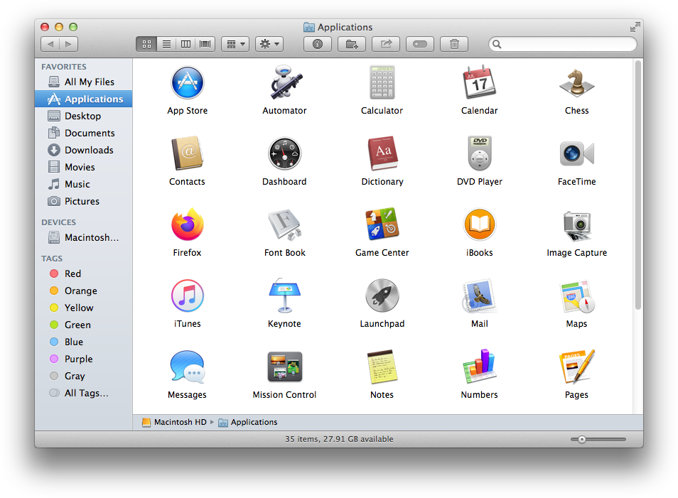 Applications, open in Finder in Mac OS X 10.9 Mavericks running apps