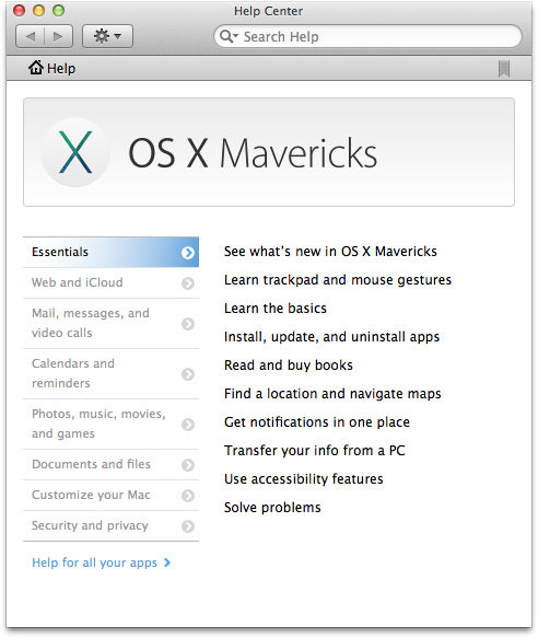 Help Center in Mac OS X 10.9 Mavericks app manager