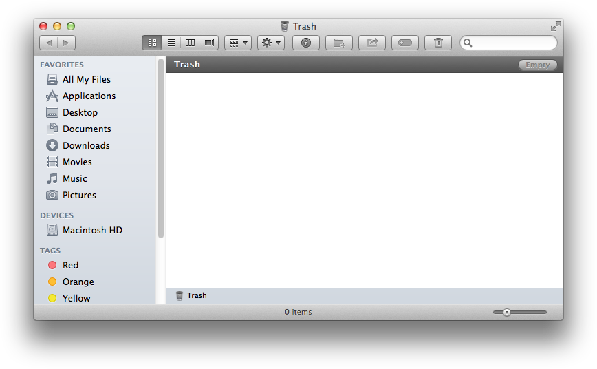 Finder 10.9.5 in Mac OS X 10.9 Mavericks trash