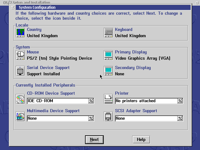 System Setup » Hardware Manager in OS/2 Warp 4 accessibility